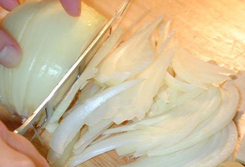 - Hành tây bỏ vỏ, rửa sạch, thái nhỏ rồi cho vào máy xay nhuyễn.